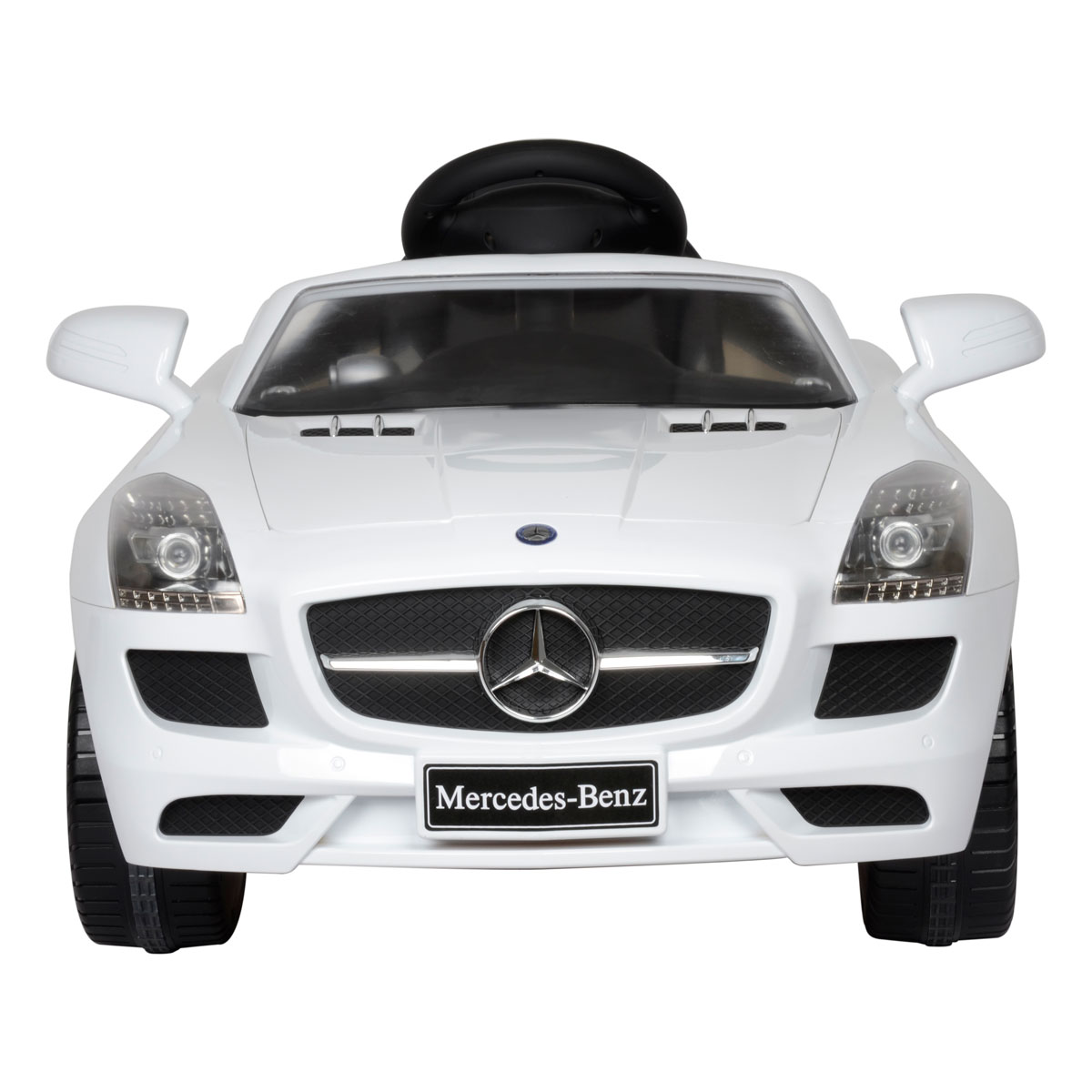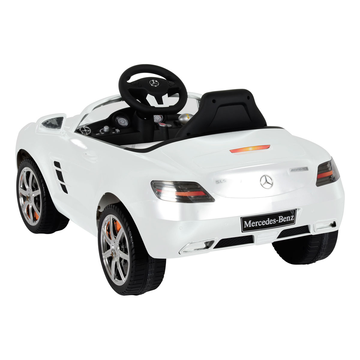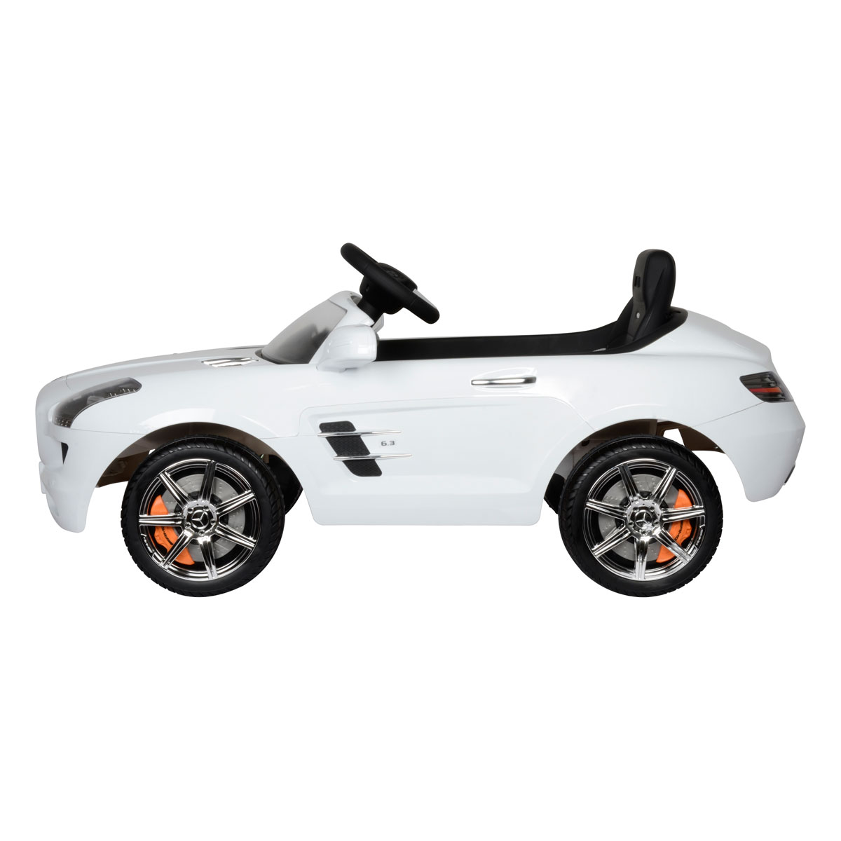 Introducing the new MERCEDES-BENZ SLS electric car; this is a scaled copy of a sports car made by the German manufacturer, MERCEDES-BENZ.