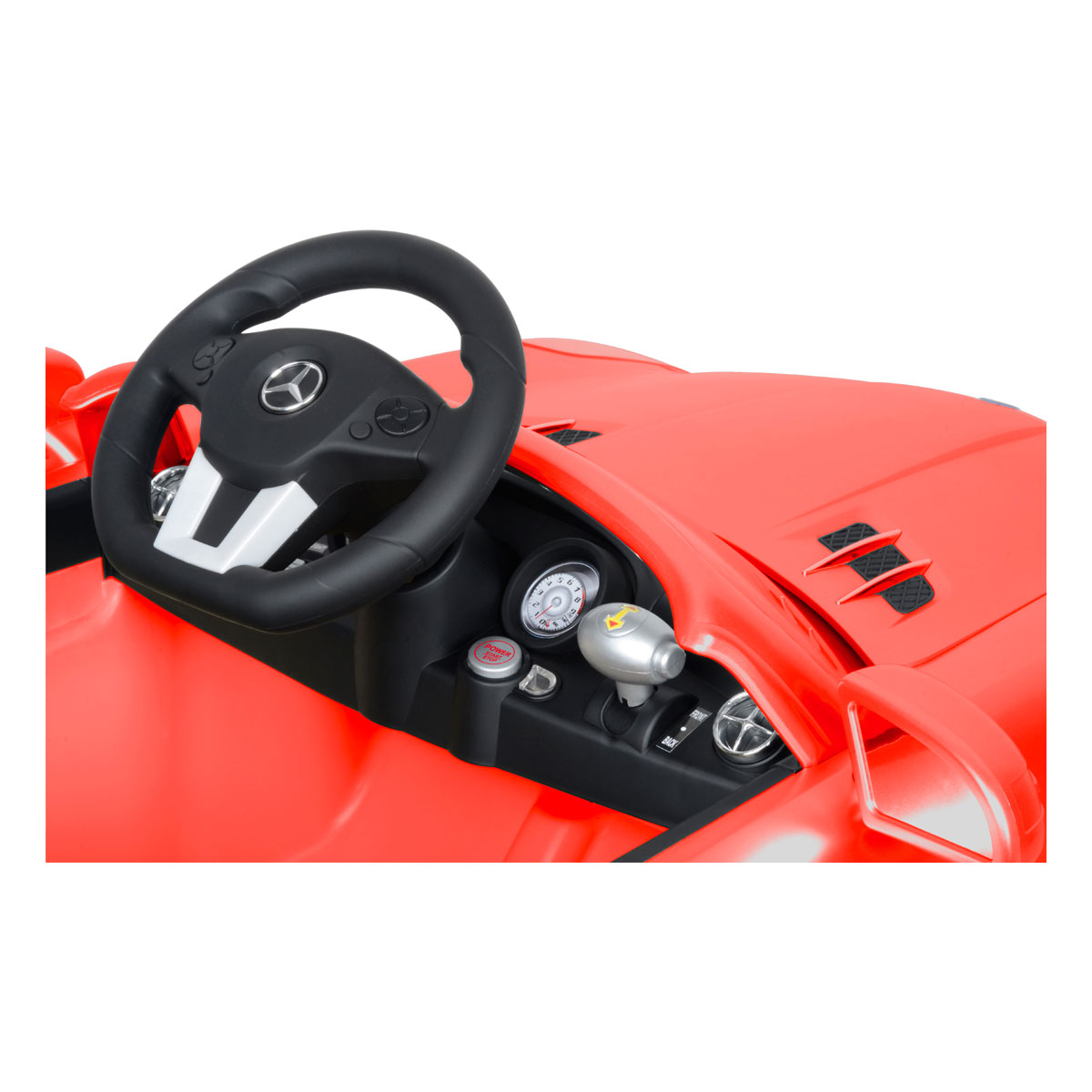 Introducing the new MERCEDES-BENZ SLS electric car; this is a scaled copy of a sports car made by the German manufacturer, MERCEDES-BENZ.