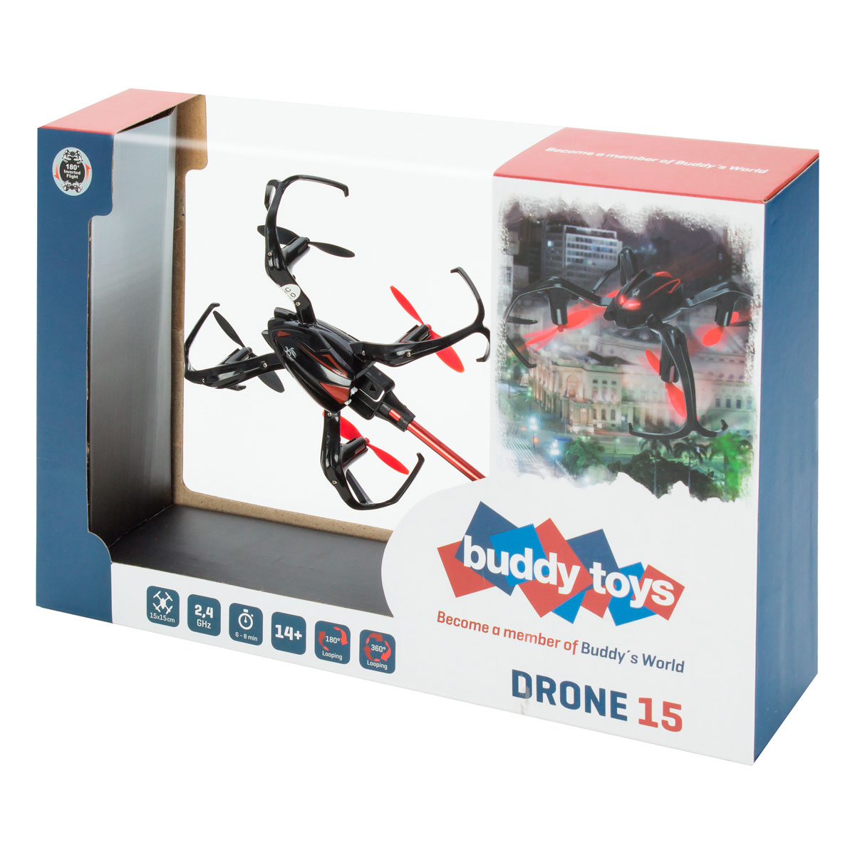 The miniature Drone 15 is a lithe aircraft with excellent flight characteristics. The biggest advantage of this drone is its size and durability and, therefore, it is suitable for beginners who can practice their flight baby steps at home or, weather permitting, outdoors. Using the FLIP button, the drone can perform the basic acrobatics.