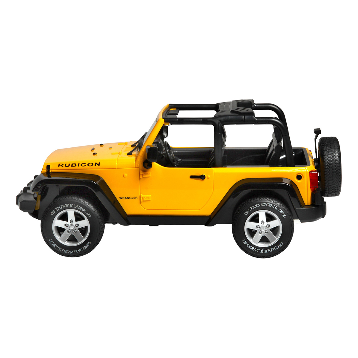 The Jeep Wrangler remote control car is made based on the famous off-road iconic brand car, Jeep. Our toy car will captivate you with sophistication of many details, and it is made in the 1:10 scale. The toy car has a door than can be opened, and it is equipped with a differential and rubber wheels to ensure better driving performance on slippery surfaces, as well as functional LED front and rear lights. The model speed ranges from 7 km/h to 10 km/h, depending on the battery age and performance. The car is controlled by a joystick with 10 meter reach