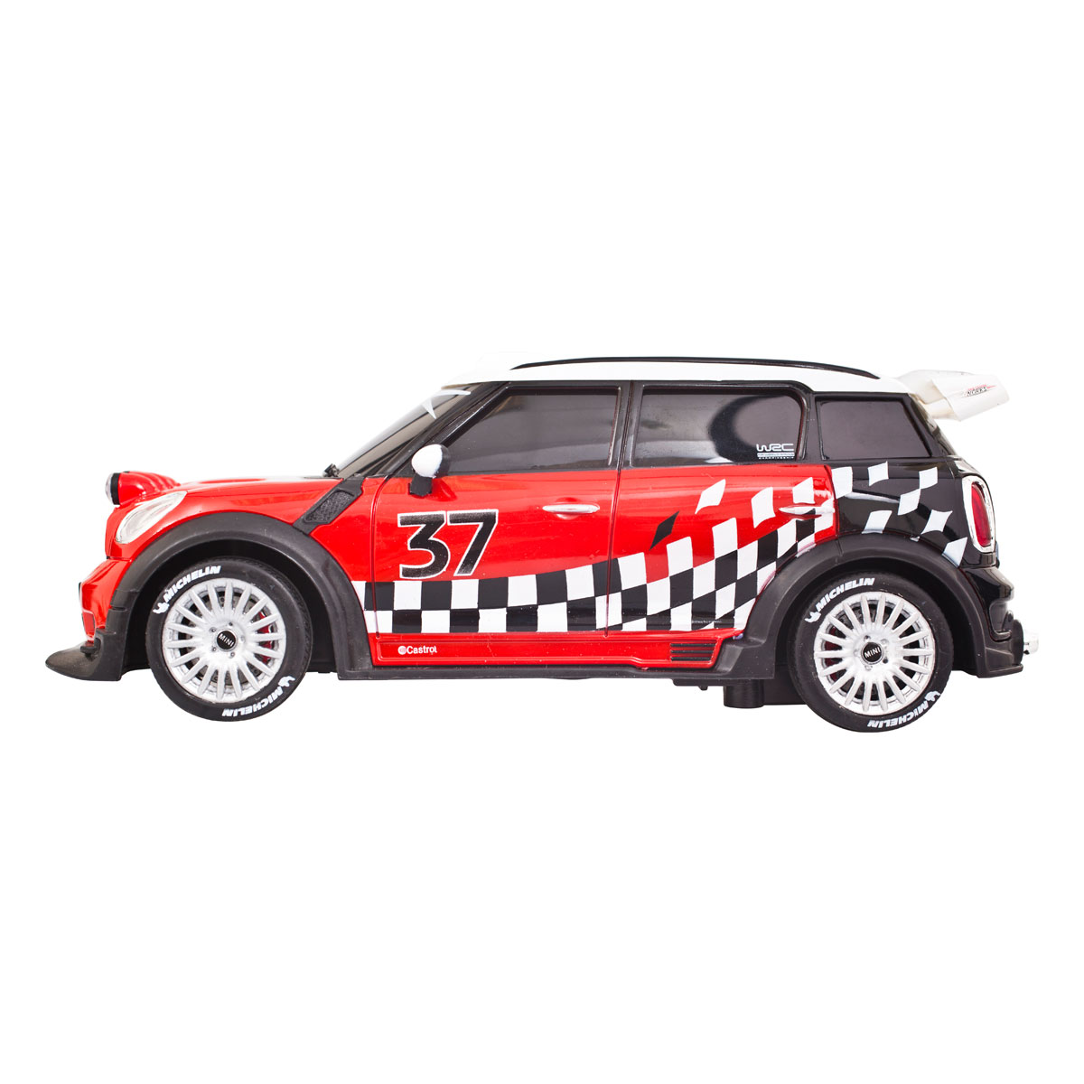 The Mini Cooper WRC Remote Control toy car is a rally special based on the civic Mini, which is a part of the BMW Group. Our toy car will captivate you with sophistication of many details, and it is made in the 01:24 scale. The toy car is equipped with a differential and rubber wheels to ensure better driving performance on slippery surfaces, as well as functional LED front and rear lights. The model speed ranges from 7 km/h to 10 km/h, depending on the battery age and performance. The toy car is controlled by a push button controller with the 10 meter range.