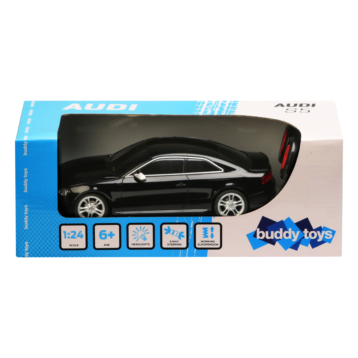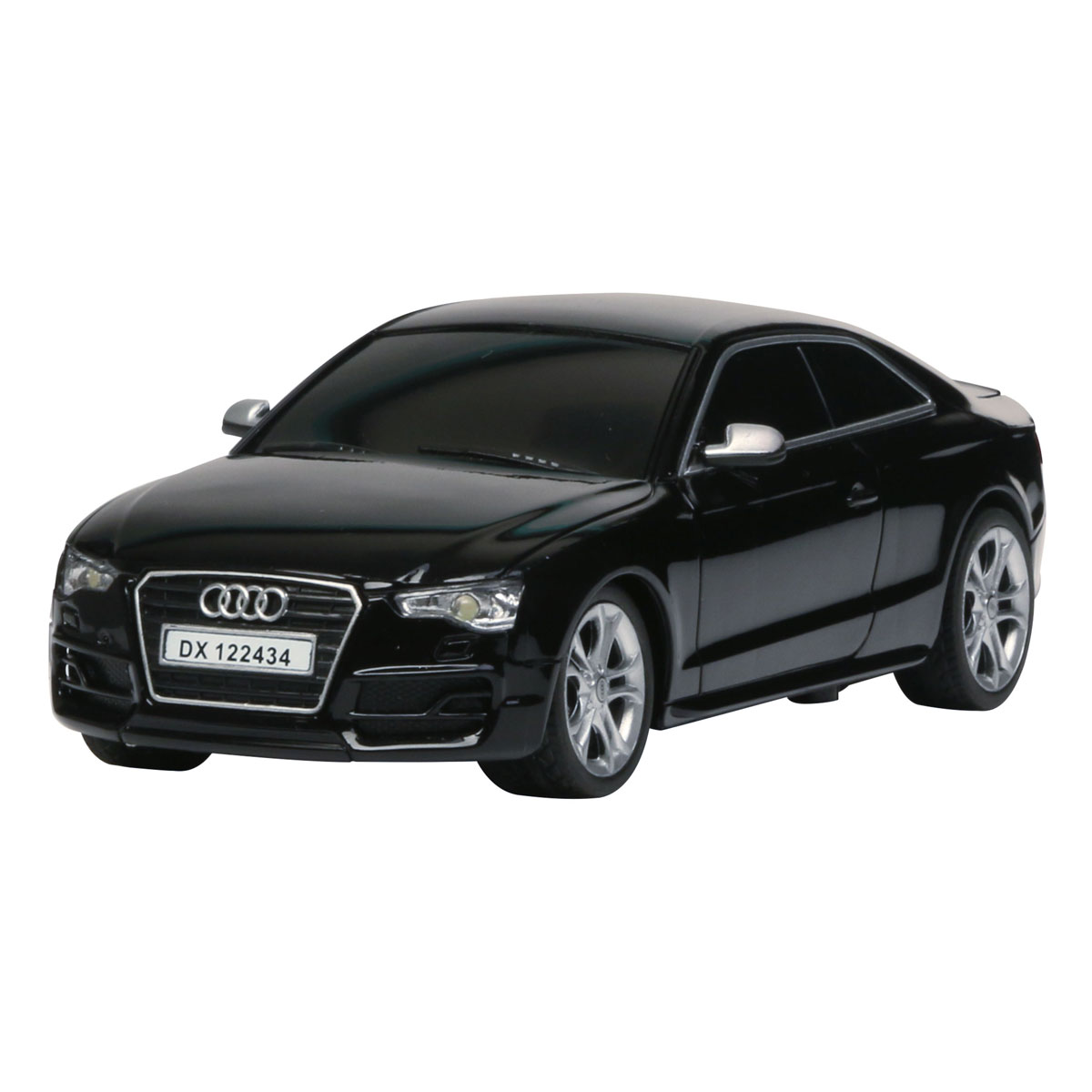 The remote control Audi S5 is the sports car version of Audi A5. Our toy car will captivate you with sophistication of many details, and it is made in the 01:24 scale. The toy car is equipped with a differential and rubber wheels to ensure better driving performance on slippery surfaces, as well as functional LED front and rear lights. The model speed ranges from 7 km/h to 10 km/h, depending on the battery age and performance. The car is controlled by a joystick with 10 meter reach
