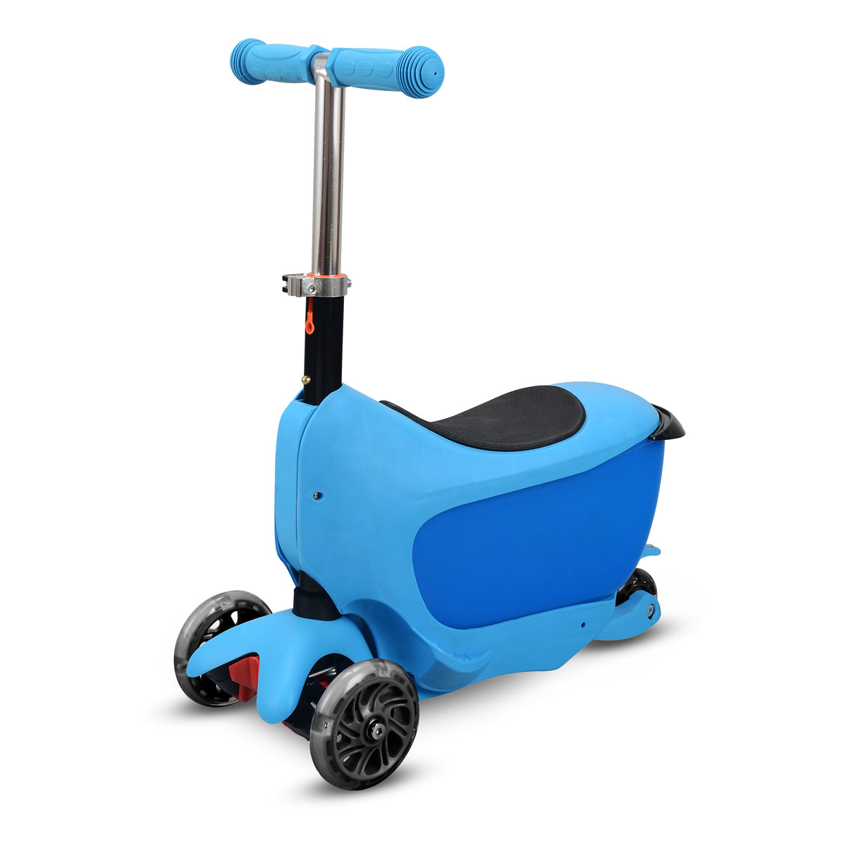TAMAN 2in1 tipping scooter with three illuminated LED wheels for easy, safe, and stable driving of younger children. The scooter can be easily altered into a ride-on. The rear wheel has a safety brake. Handlebars have comfortable rubber grips so that children can hold them comfortably. It makes turns by tilting, which helps in learning balance and coordination.