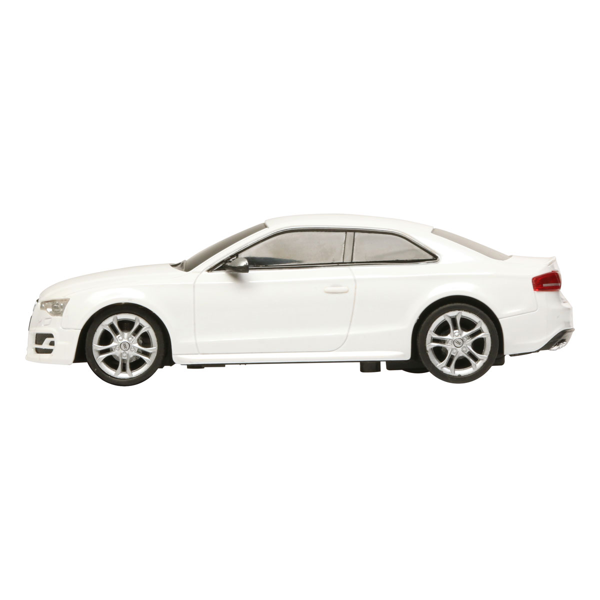 The remote control Audi S5 is the sports car version of Audi A5. Our toy car will captivate you with sophistication of many details, and it is made in the 01:24 scale. The toy car is equipped with a differential and rubber wheels to ensure better driving performance on slippery surfaces, as well as functional LED front and rear lights. The model speed ranges from 7 km/h to 10 km/h, depending on the battery age and performance. The car is controlled by a joystick with 10 meter reach